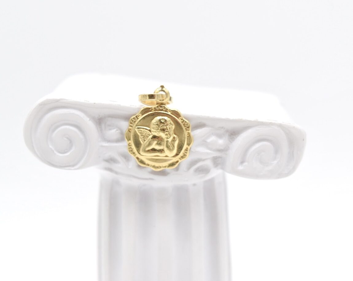 18K 12 mm Gold Angel Pendant