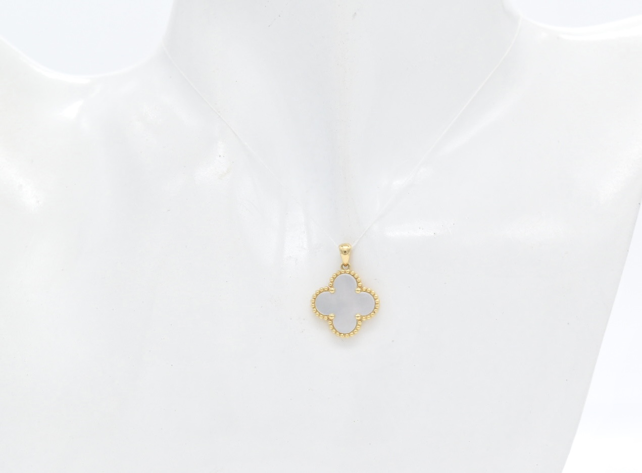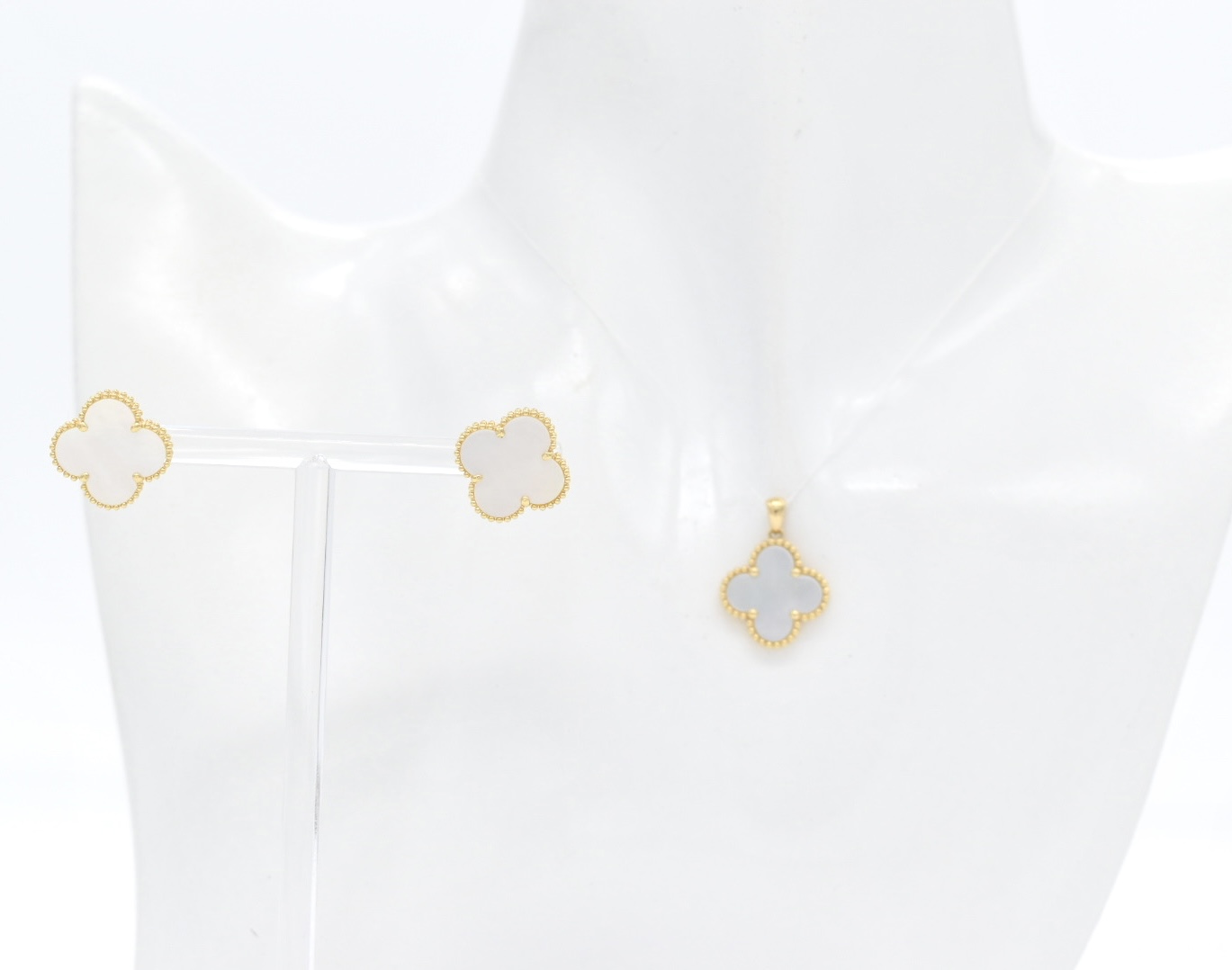 / 18K 15 mm White Mother of Pearl Clover Set