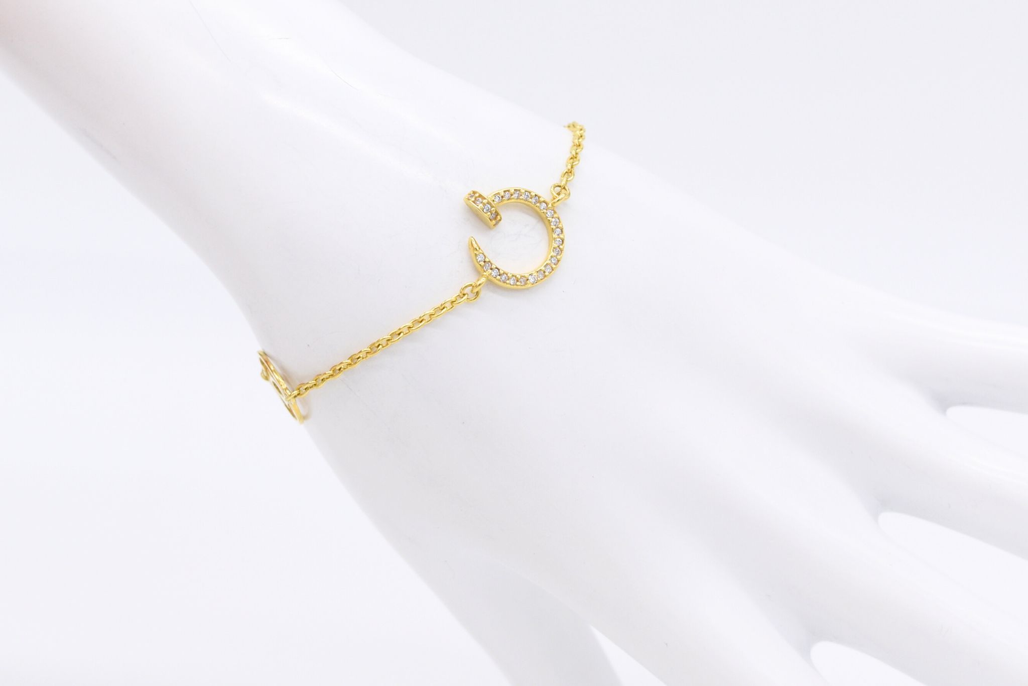 Sleek 18K yellow gold bracelet featuring a centered nail motif set with sparkling CZ stones. At 8 inches it offers a comfortable, modern fit—subtle yet striking for everyday wear or special occasions.