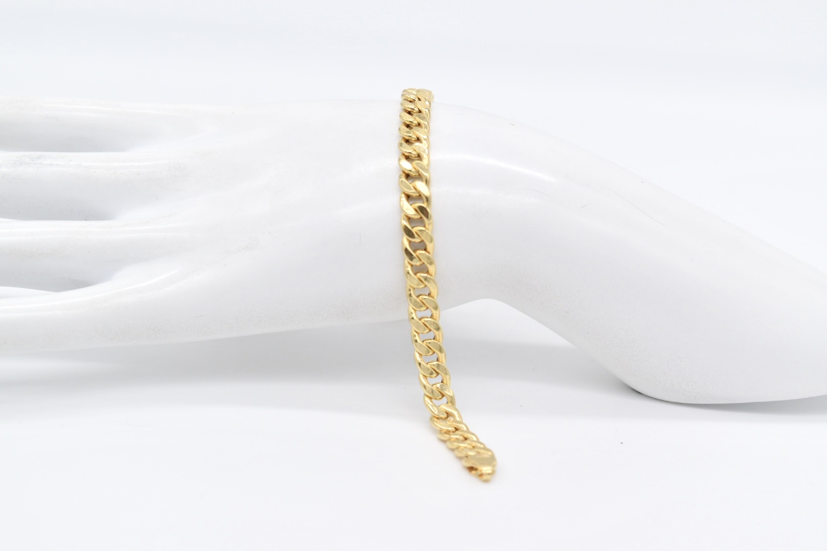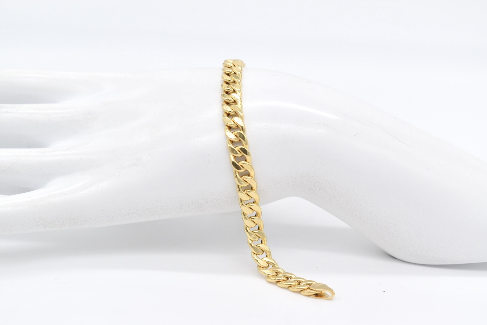 Bold 18K yellow gold curb chain bracelet (4.98 g), 8 inches long with a 6.5 mm width. Chunky yet refined—makes a strong statement alone or layered.