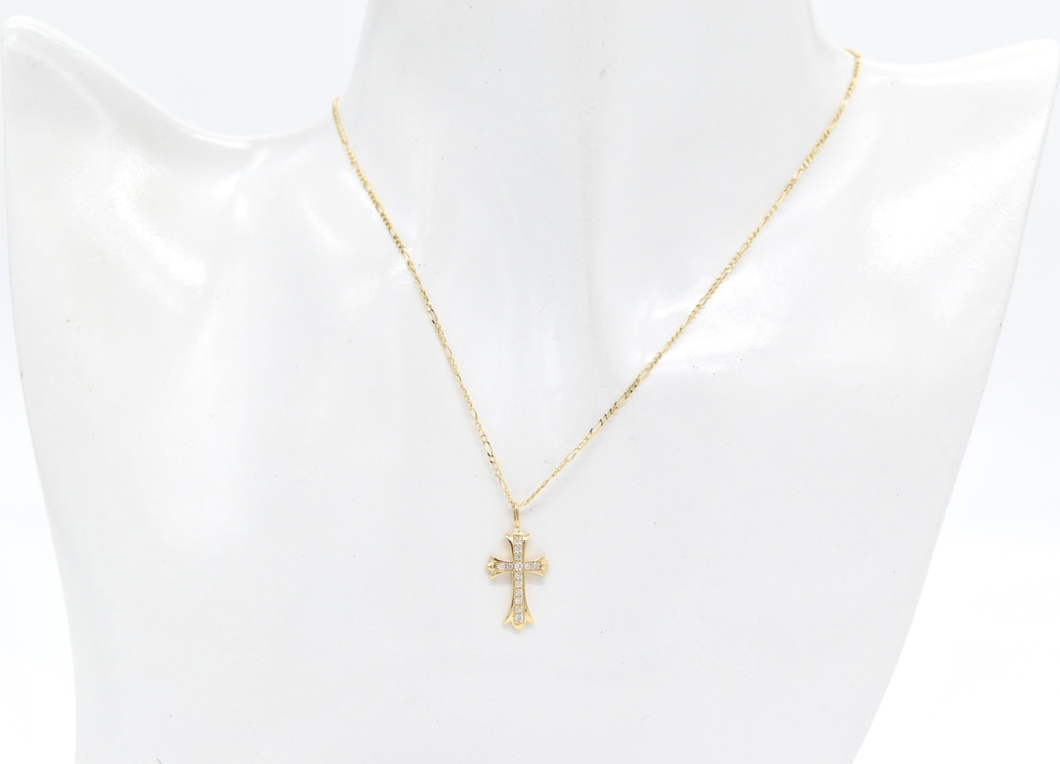 / 18K Diamond Cross Pendant with Figaro Chain
