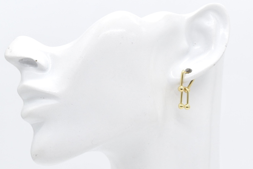 Modern 18K yellow gold hardware-style earrings (2.47 g). Sleek, structured design—bold yet wearable for everyday or dressed-up looks.