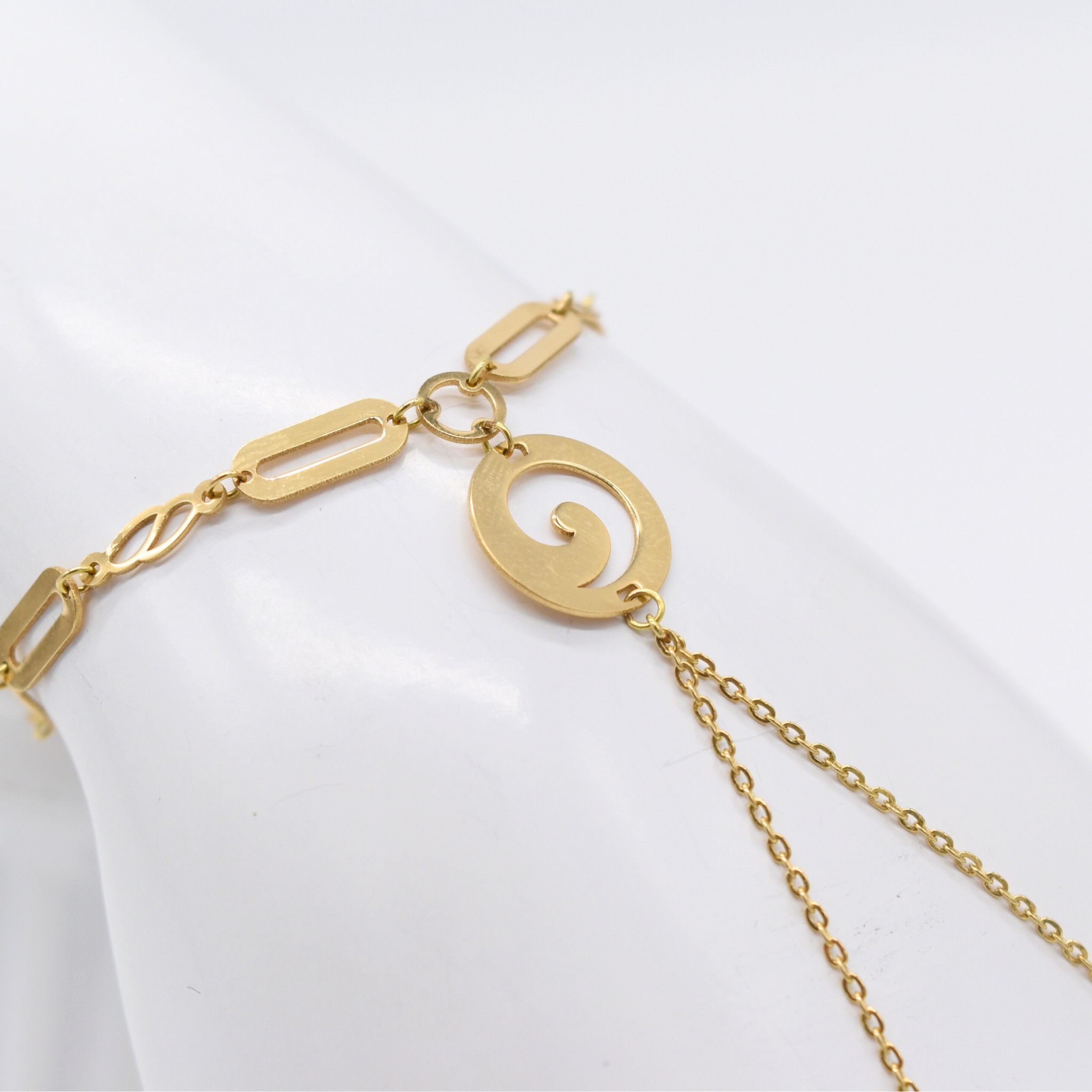 Bold yet refined 18K yellow gold harness bracelet with a 5 mm chain width. Adjustable from 17.1 to 18.2 cm for a tailored fit. Strong, stylish and perfect for daily wear or layering.