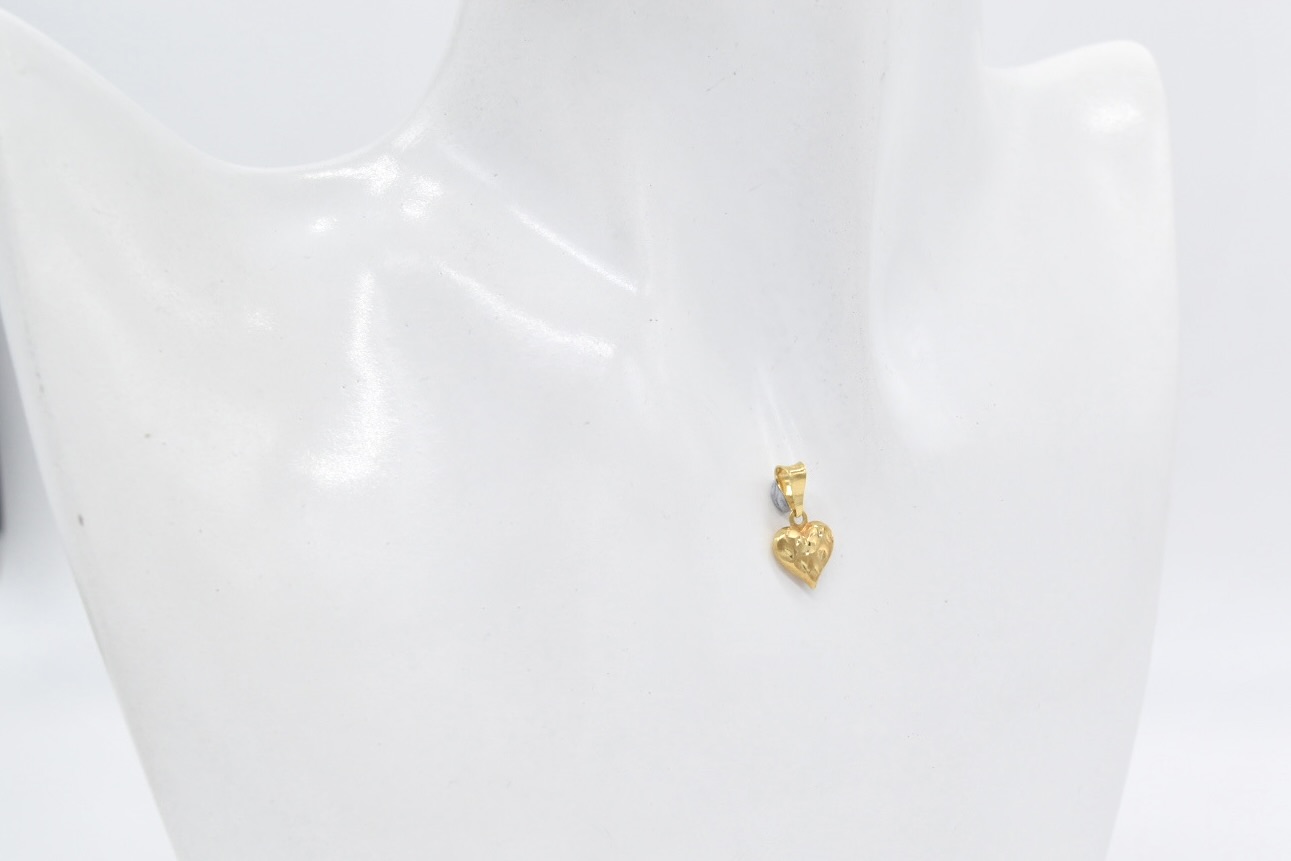 Tiny 18K yellow gold heart pendant (0.51 g) with an engraved design. Delicate and charming—perfect for a subtle, personal touch on a fine chain.