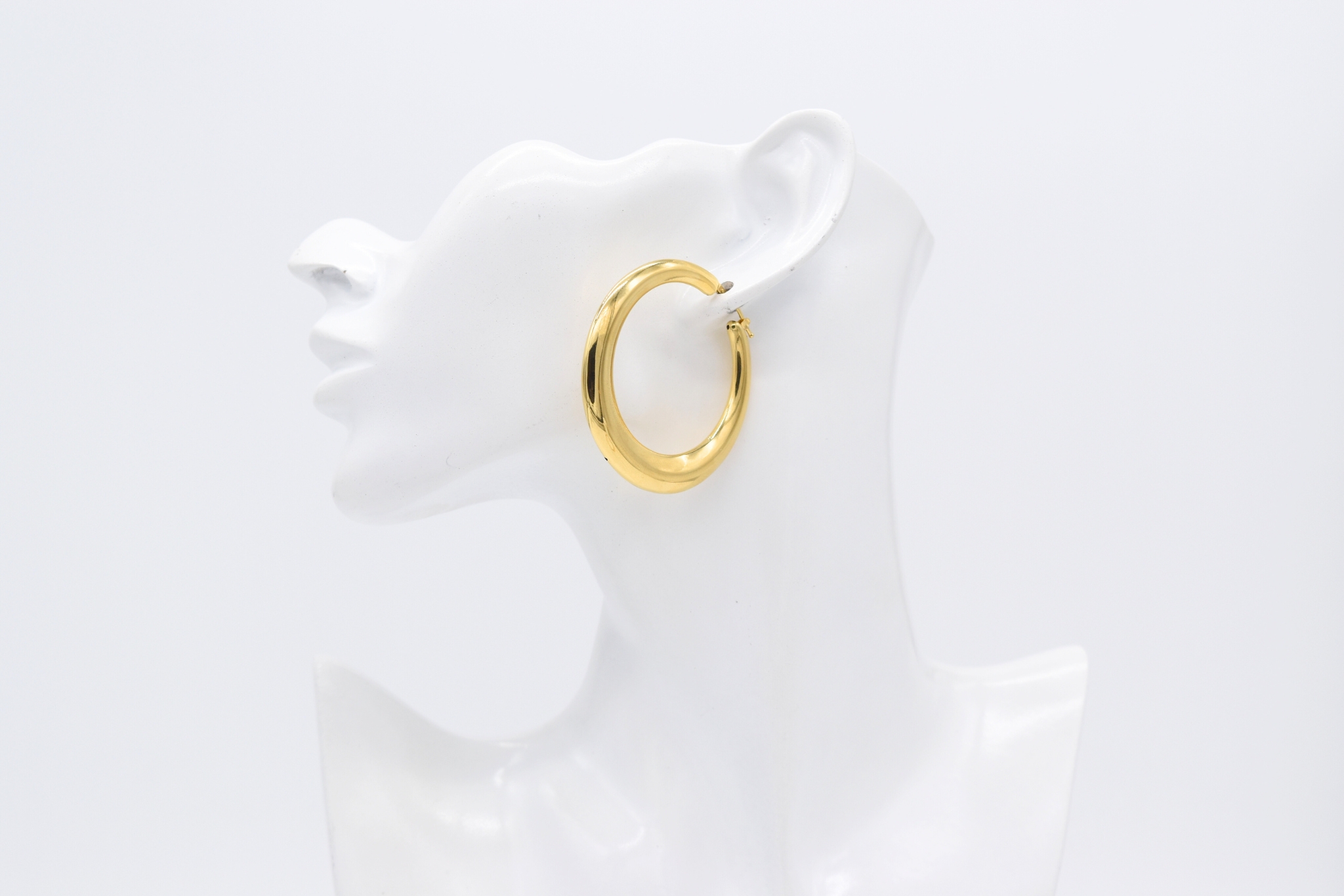 Bold 18K yellow gold hoop earrings (8.40 g), 50 mm diameter — larger than an AUD 50‑cent coin. Classic, statement hoops that elevate any outfit.