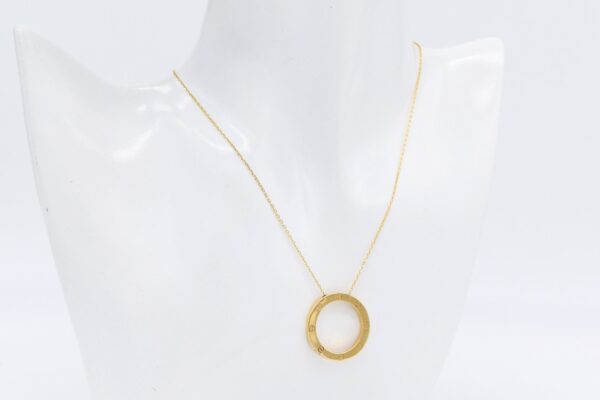 Elegant 18K yellow gold necklace (5.12 g) with a 24 mm love pendant on a 17.5‑inch chain. Timeless, polished, and perfect for everyday wear or gifting.