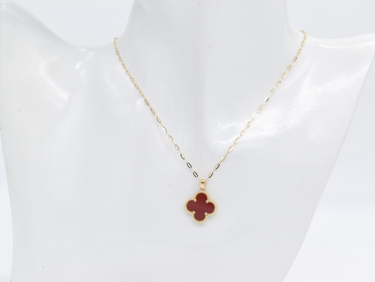 Chic 18K yellow gold necklace (2.89 g) with a 15 mm red clover pendant. Chain locks at 16 or 18 inches—versatile, polished, and perfect for everyday wear or gifting.