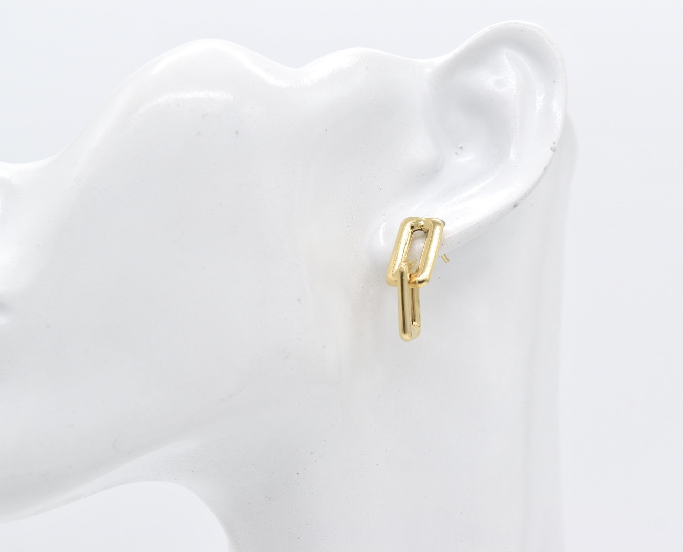 Stylish 18K yellow gold square link earrings (2.82 g). Modern geometric links—bold yet wearable for day-to-night looks.