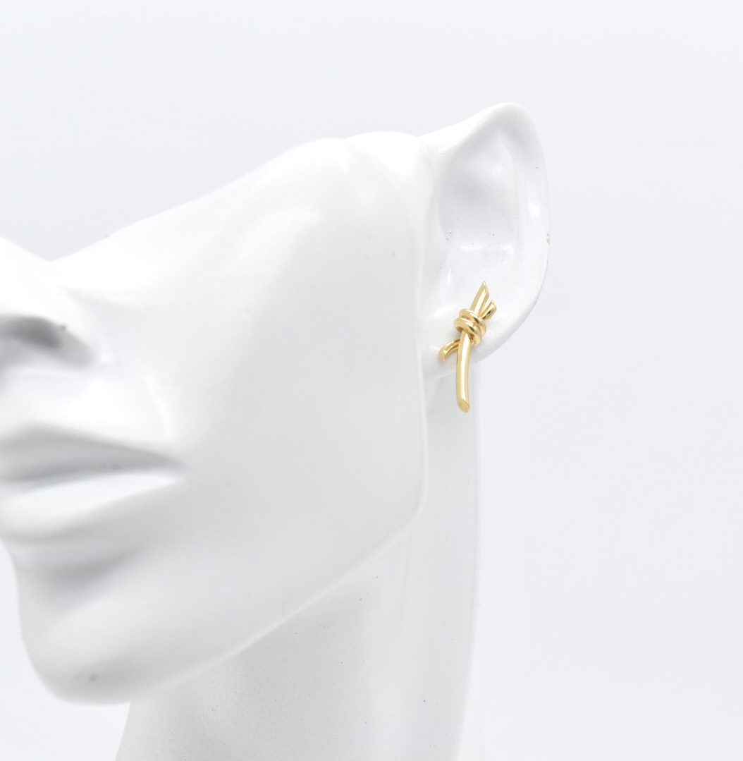 18K Yellow Gold Two‑Way T Stud Earrings with CZ — 2.09 g