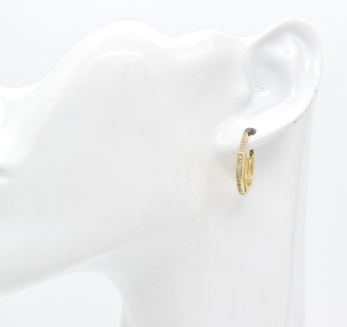 18K T-Lock Hoop Earrings with CZ Stones quantity