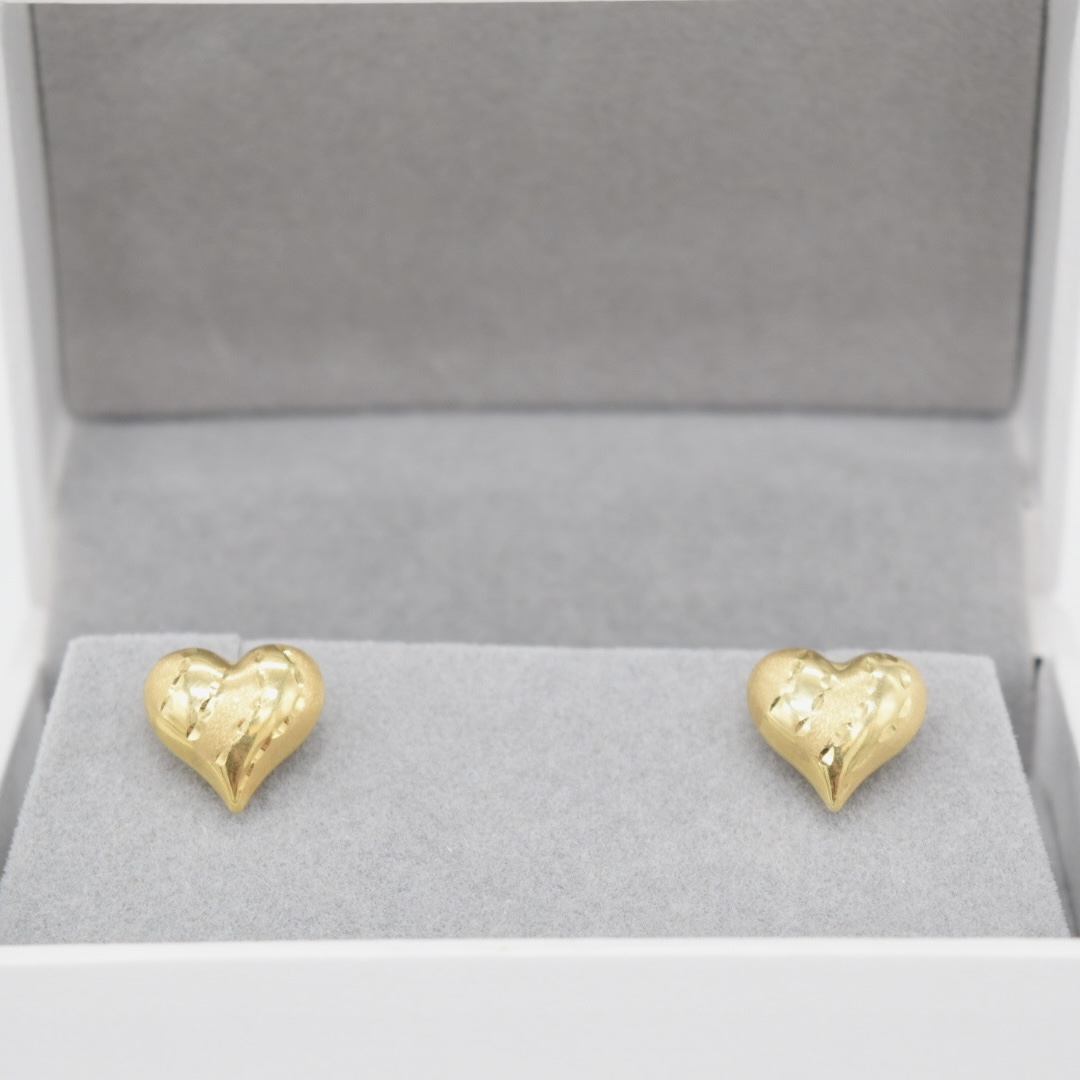 18K Textured Puff Heart Earrings
