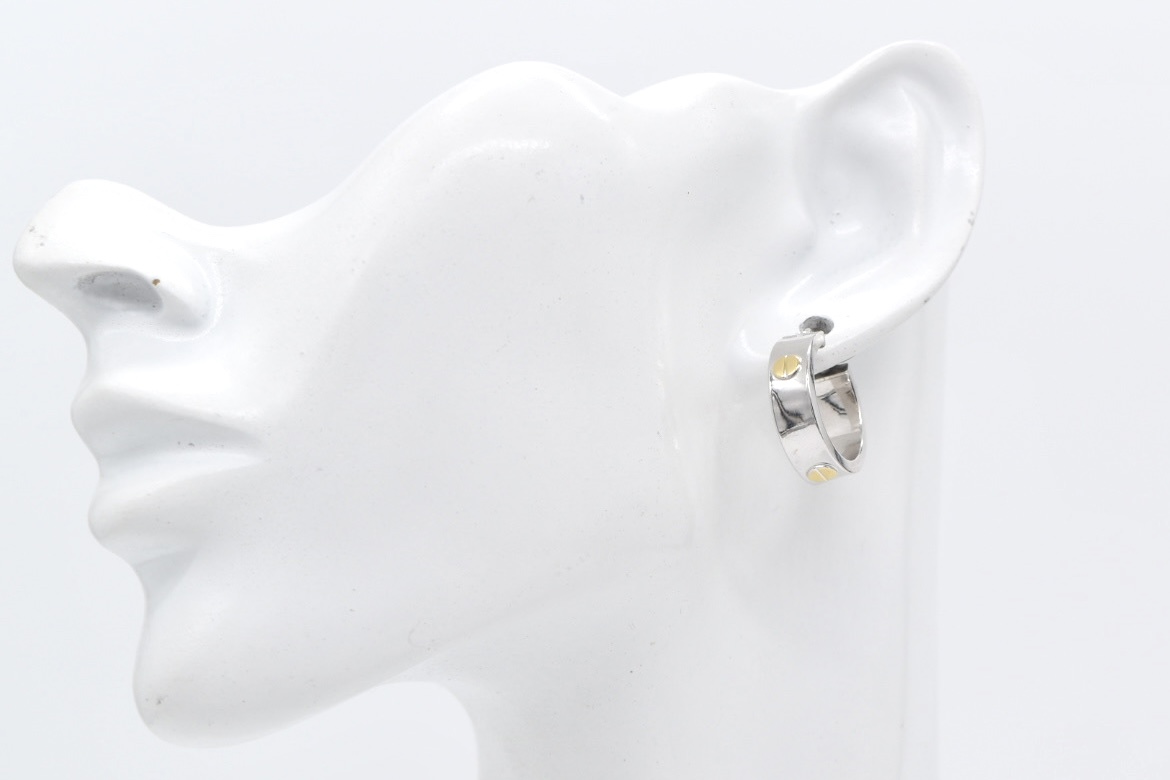 / 18K Two Tone Embossed Love Hoops Earrings