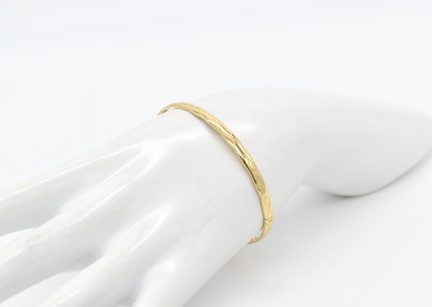 18K Yellow Gold Stretch Mesh Bangle — Size 17–18