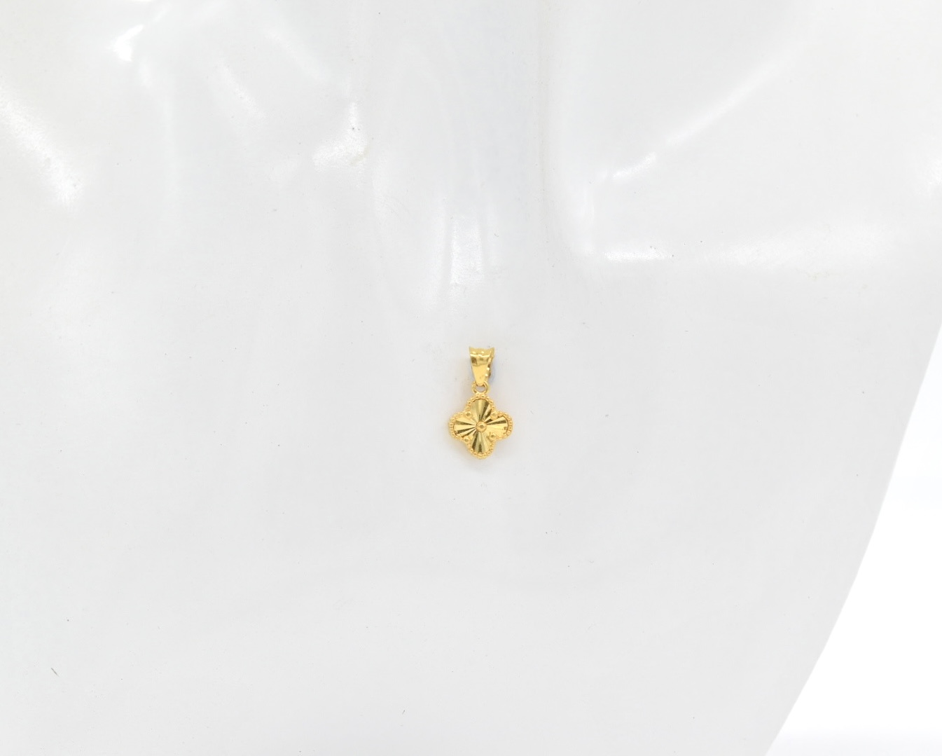 A delicate clover pendant cast in warm 21K yellow gold. At 10.5 mm, it offers subtle charm and timeless elegance—perfect worn alone for a minimalist look or layered with other necklaces for gentle sparkle.